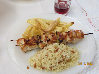 | Chicken Kabab with potatoes and rice. We did get dessert - but we ate it and forgot to take a photo! |